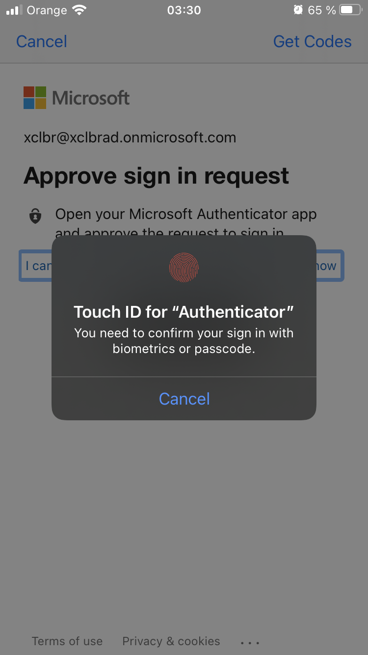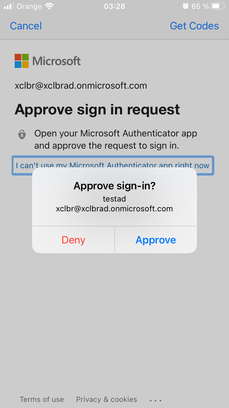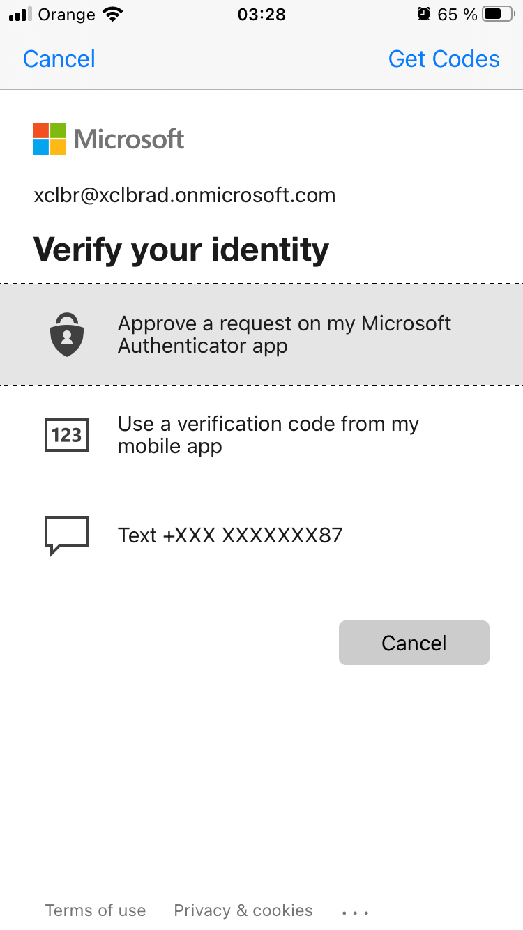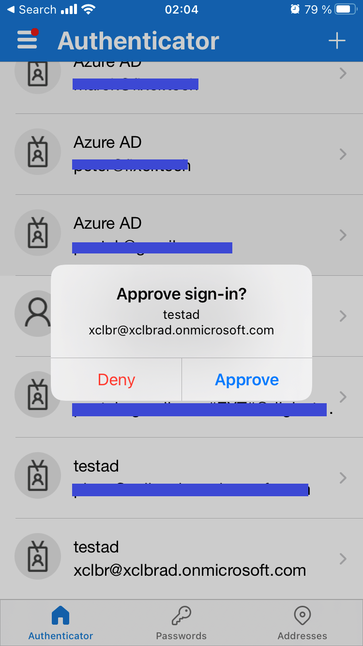 Select method for identity verification. Tap Approve a request on my Microsoft Authenticator app