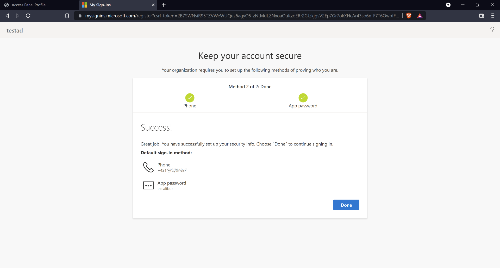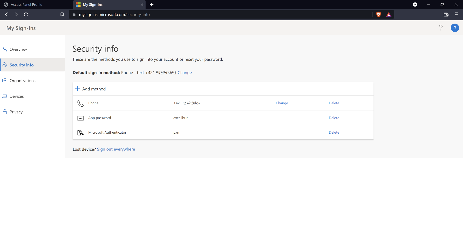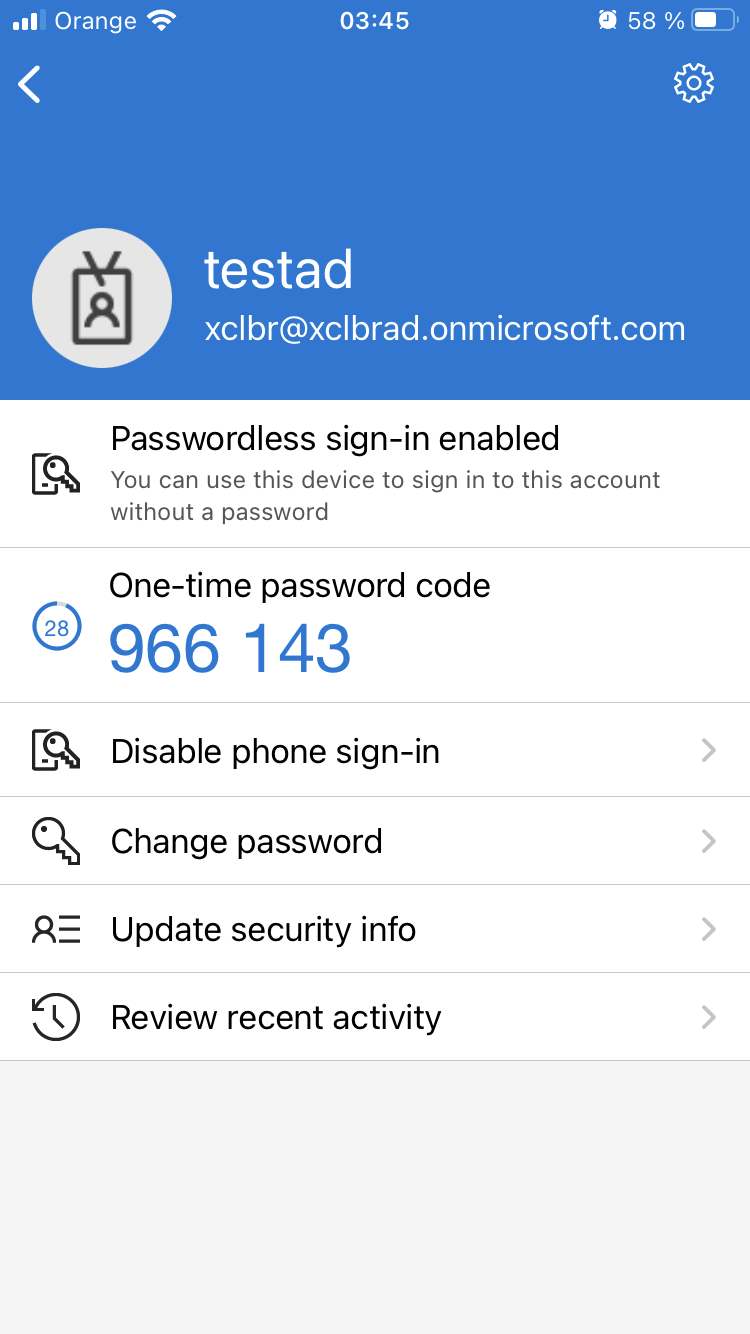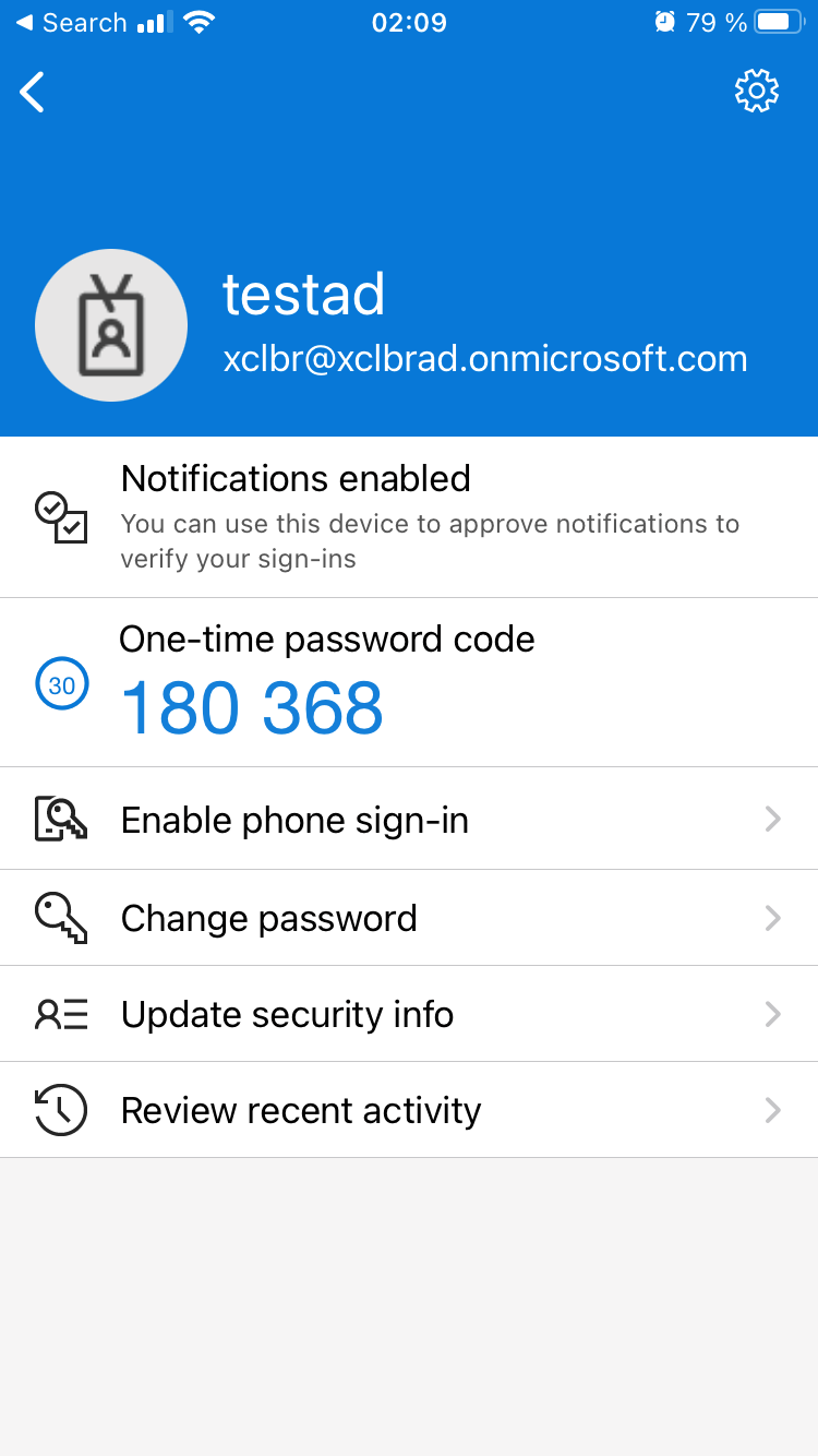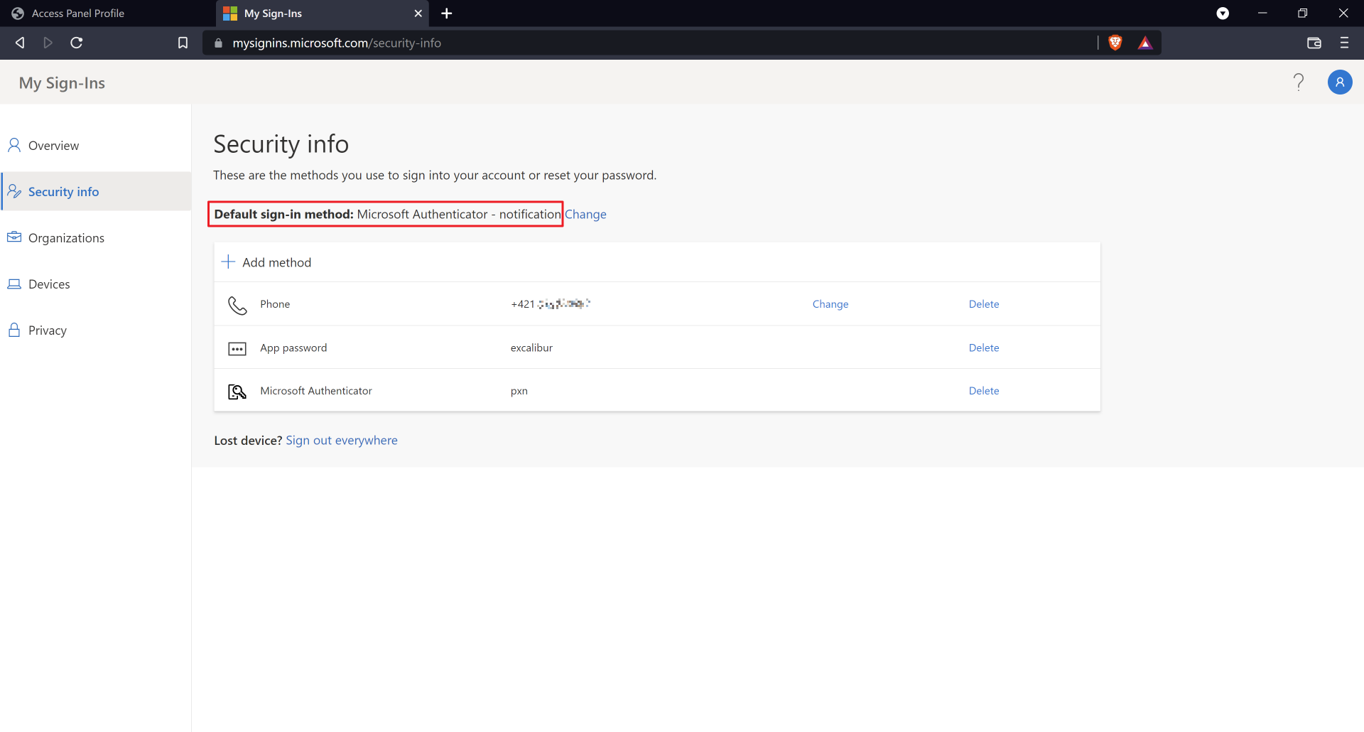 Now is your MS Authenticator set up, and you can see Passwordless sign-in enabled