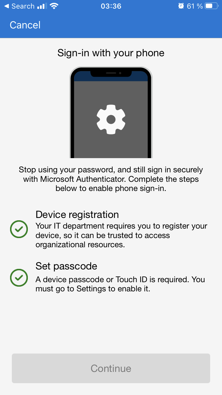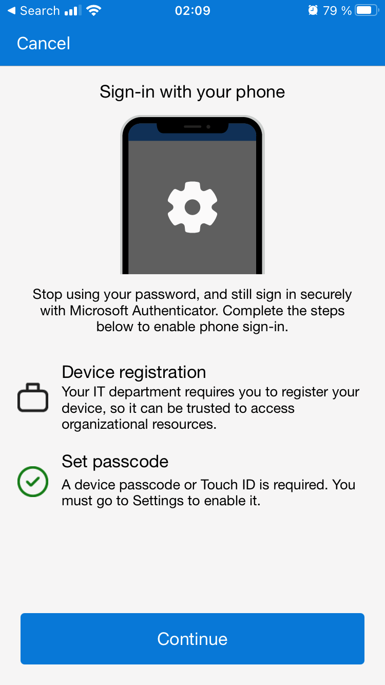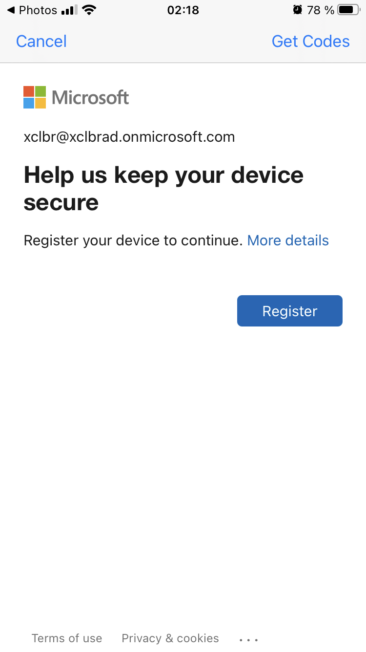 Final step of the MS Authenticator setup is registration of your device. Tap Register