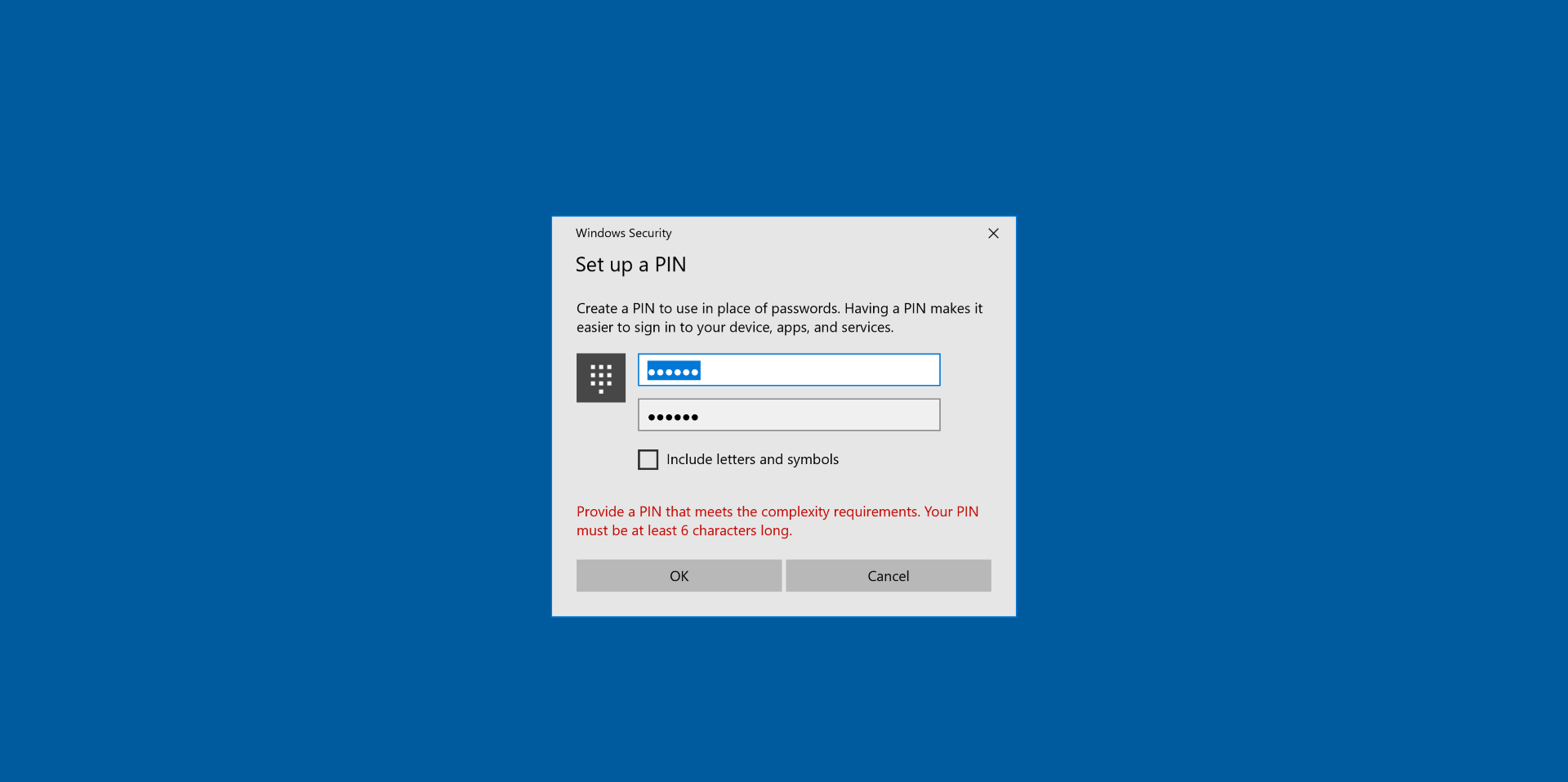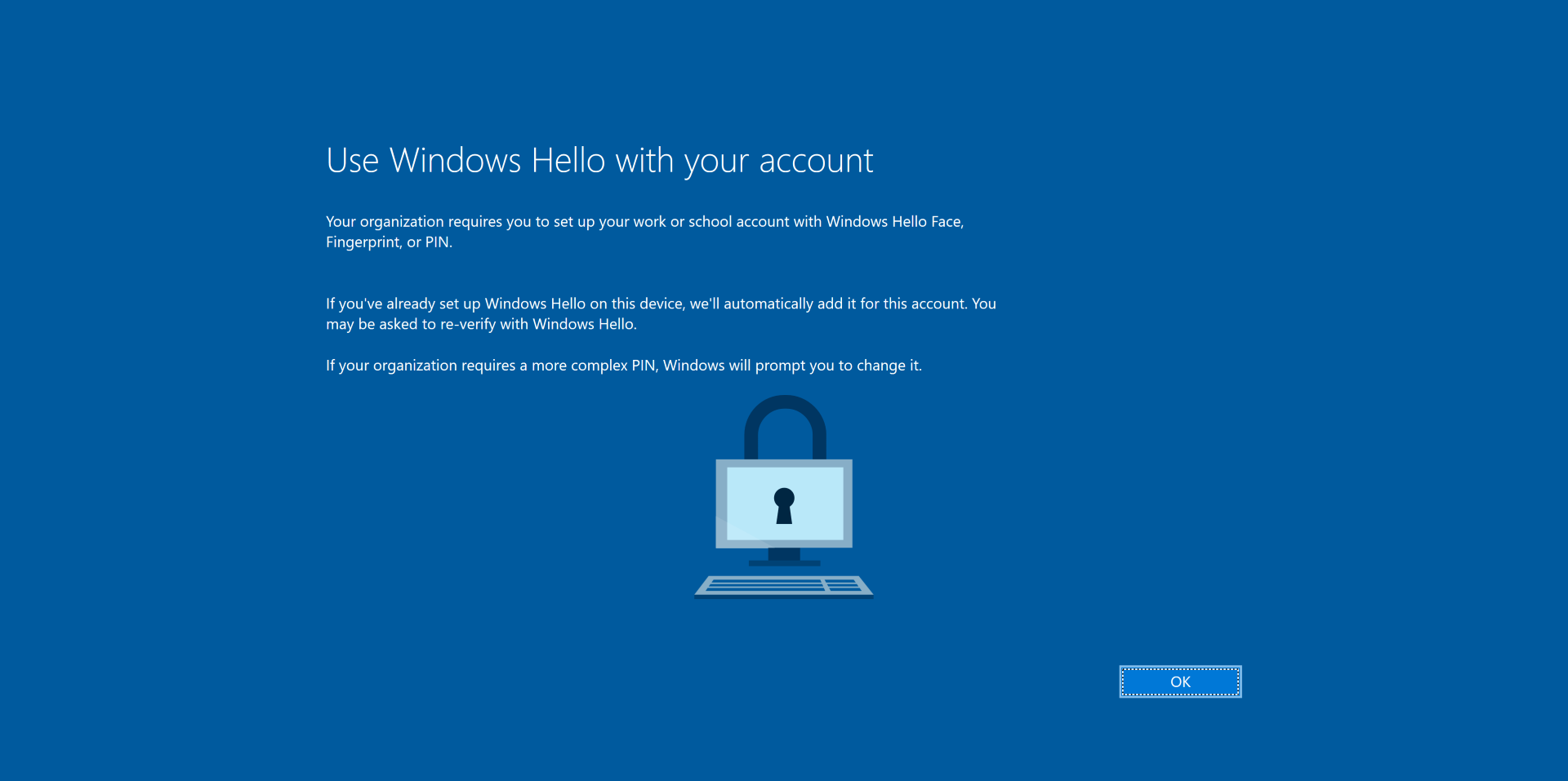 Windows Hello informs you that your organisation requires the setting of other factors, such as Face biometrics, PIN or Fingerprint
