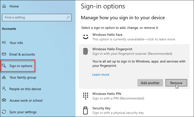 - How to disable Windows Hello Biometrics in Settings