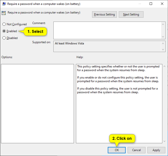 - How to enable required password after sleep in Local Group Policy Editor