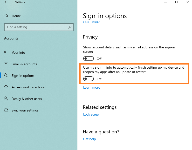 - How to disable Autologon after update or restart in Settings