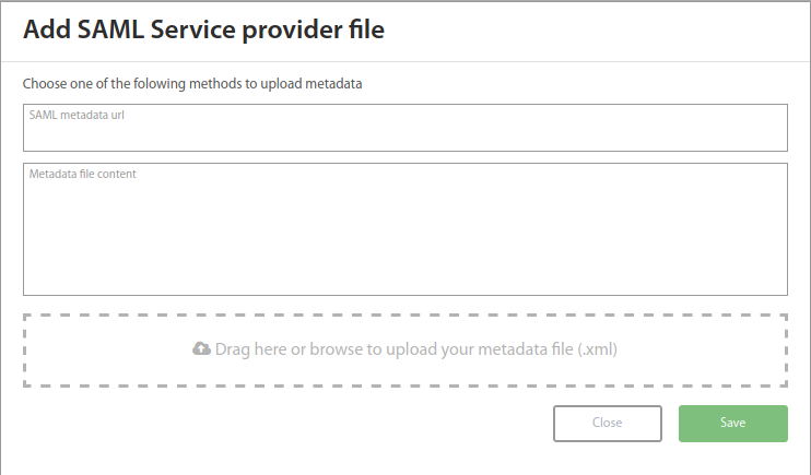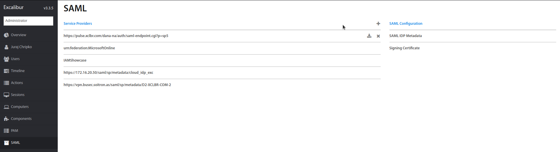 To manage SAML you need to be logged into Excalibur Dashboard as Administrator. Excalibur Dashboard SAML user interface: