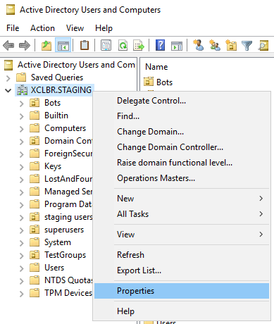 Next invoke context menu by right-clicking on the root of your domain and select “Properties”.