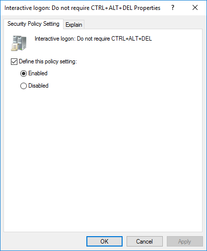 Enable / Disable interactive Ctrl+Alt+Del logon¶