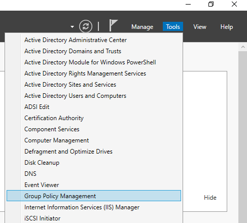 On Microsoft Windows Server 2016 open Server Manager application. In application menu click “Manage” and in submenu click “Add roles and features”