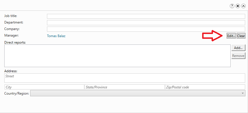If you want to assign a manager for this user, click on the Edit button on Organization tab part Manager. Fill the name of the manager and confirm it.
