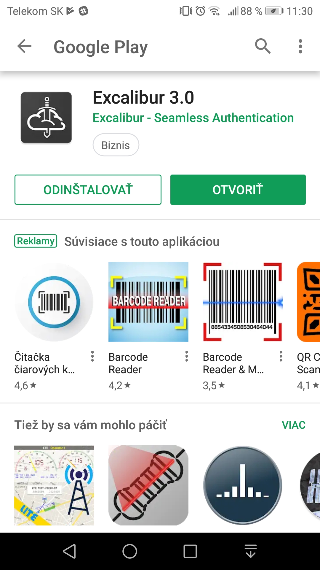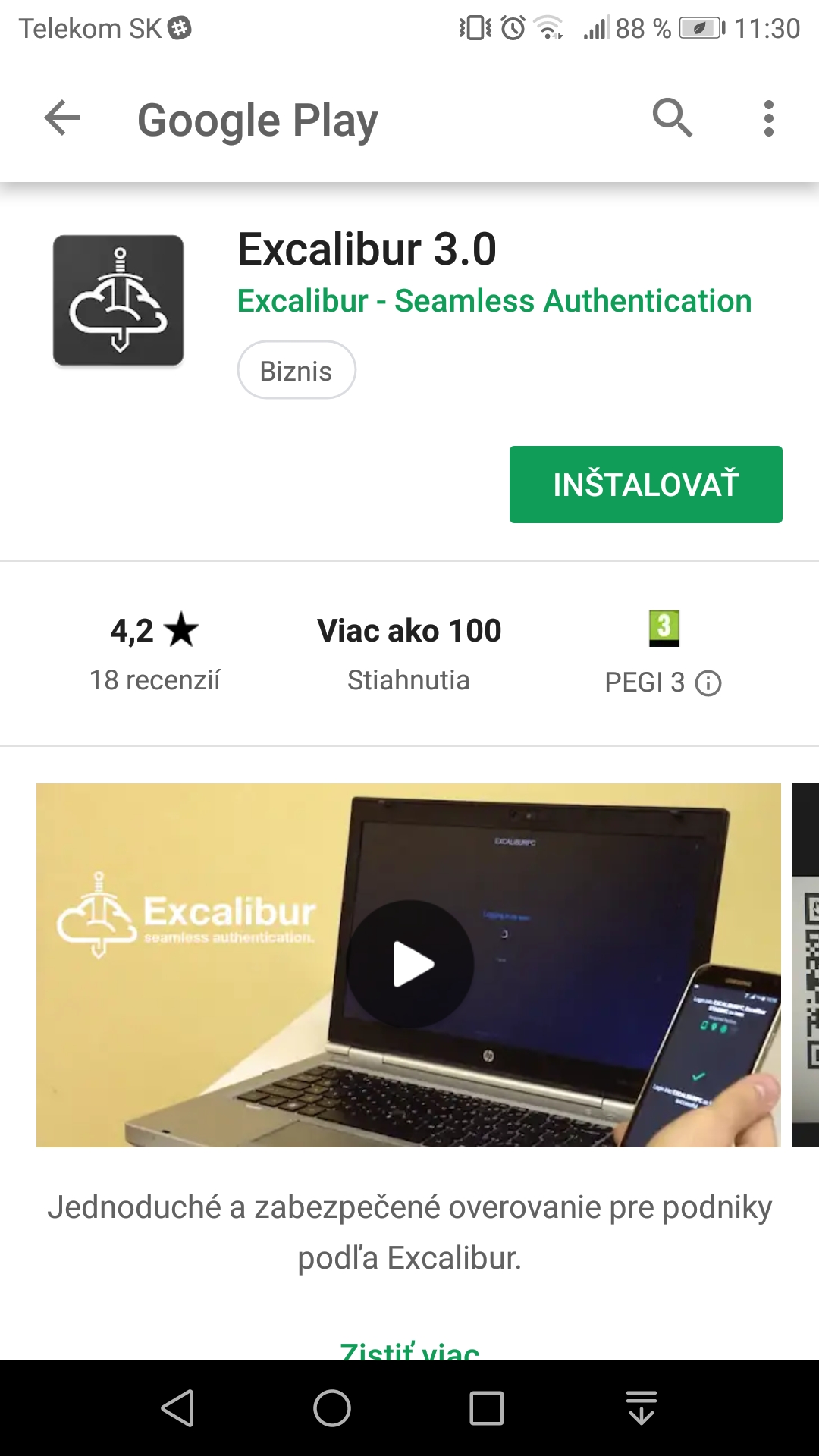 For full use of Excalibur, you need to have Excalibur Enterprise installed on your phone. The application is available for Android and iOS mobile platforms that can be downloaded from Google Play and Apple Store. Supported versions of mobile platform are Android 5.0 and up and iOS 9 and up. Recommended version of Android is Android 6.0 due to fingerprint support.